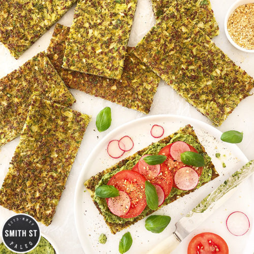 Well, next time, instead of just chopping broccoli (I literally just sang it again as I typed that), why not whizz it and make it into this awesome flatbread? It’s awesome for dips, open sangas and makes a kick-ass bruschetta base.