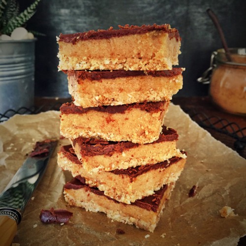 Take the base from the fridge and spread the caramel layer evenly over the crust. Pop it back in the fridge while you make the chocolate.