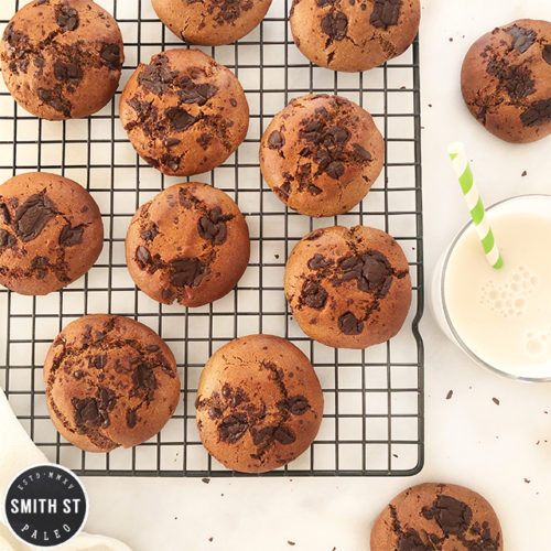 Scoop out 12 even spoonfuls onto tray. You can pick up and roll the batter into rough balls and flatten slightly on tray so they’re uniform.