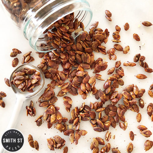 So last time we were home in Australia, the hubs picked up a bag of chocolate coated pepitas at the store. Loved them. Munched through a few bags while we were there. Bought several bags to bring back to Dubai with him. Munched through those. Wasn’t until the last serving in the last bag that he read the ingredients and realised sugar was the second ingredient on the list after pepitas. Whoops. Moral of the story? The husband person clearly disregards everything I bang on about and fell for the old “these are in the health food section, therefore are definitely healthy” chestnut. Well, I was faced with 2 options. Start divorce proceedings or make up my own recipe to replicate his new favourite snack. I went for second option. Divorce seemed a little extreme, and ain’t nobody got time for Tinder in your forties.