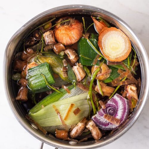 Place the scraps in the freezer in a bag or sealed container. Keep adding to the collection until you have at least 4 cups of scraps. (You can freeze scraps for up to 6 months).