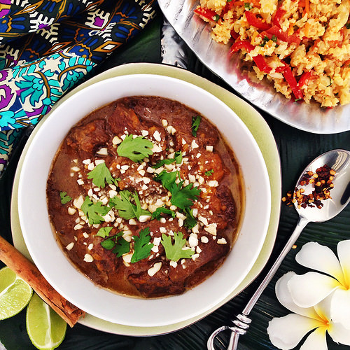 For this dish, you need to use a lower grade cut of beef and cook it for a long period of time to get the end result of beautifully soft meat in the flavorful gravy, but trust me it’s worth it. Sweet potato replaces the white potato, and cashews replace the peanuts, so is it Paleo?? Hell yes!