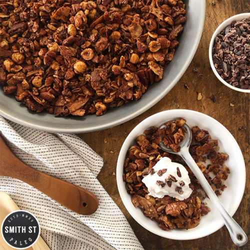 TOOT TOOT! It’s time to get off the breakfast trash train driven by Mr Kellogg’s and whip up a batch of home-made granola. This stuff makes a mocha-ry (see what I did there?) of the boxed up chemical shitstorm that that charlatan has been flogging for years, and it’s not only filling, but tastes bloody awesome. Anyone whose ever eaten the chocolate-covered coffee beans from the David Jones Food Hall will vouch that this flavour combo is like Lady Gaga and Bradley Cooper for your tastebuds. What are you waiting for?
