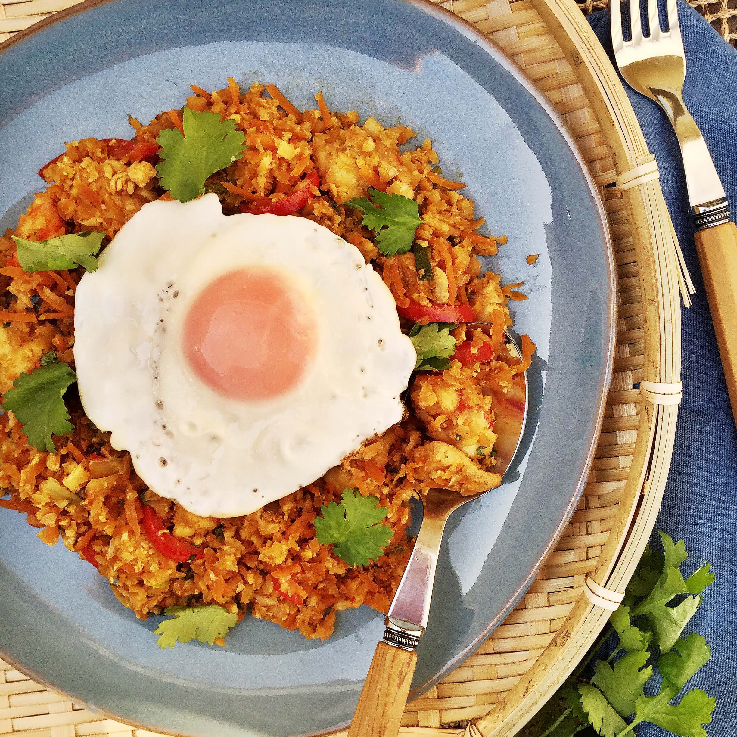 I love Nasi Goreng. it brings back happy memories of our wedding week in Bali. I was some sort of Nasi Goreng monster that week. I swear I ate it every day, maybe sometimes twice a day. I was probably lucky I was still able to zip up my dress on the big day to be honest. This is my healthy version of this delicious dish, and definitely one of Mr Smith’s favourites. Cook this up, pretend you’re Bali, and if you wash it down with an icy cold (non-Paleo) Bintang, I promise I won’t judge.