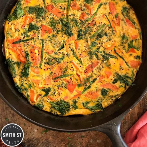 You’re vegan? Firstly, soz about that. Second, this frittata is perfectly delicious minus the salmon, maybe add in some olives for that salty factor.